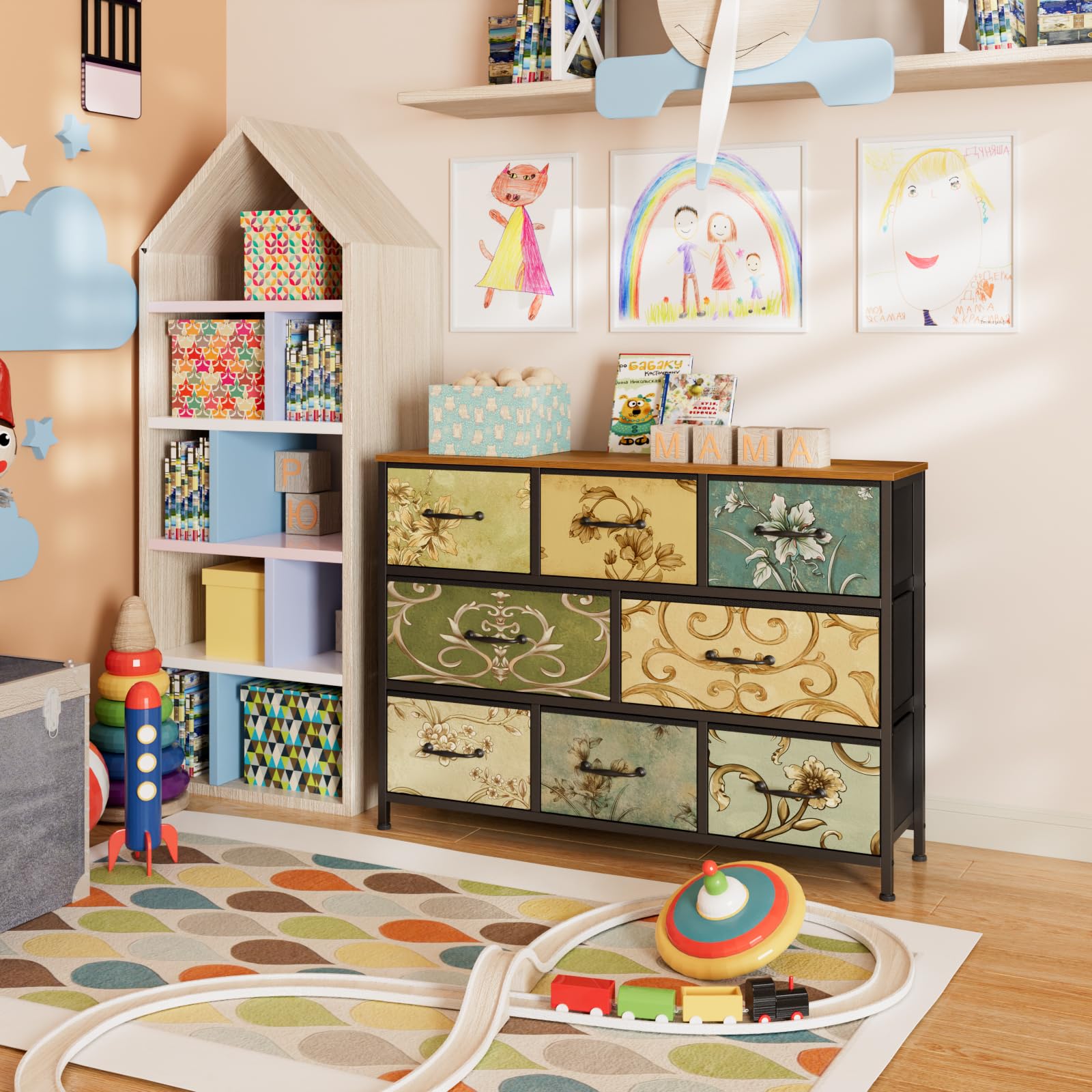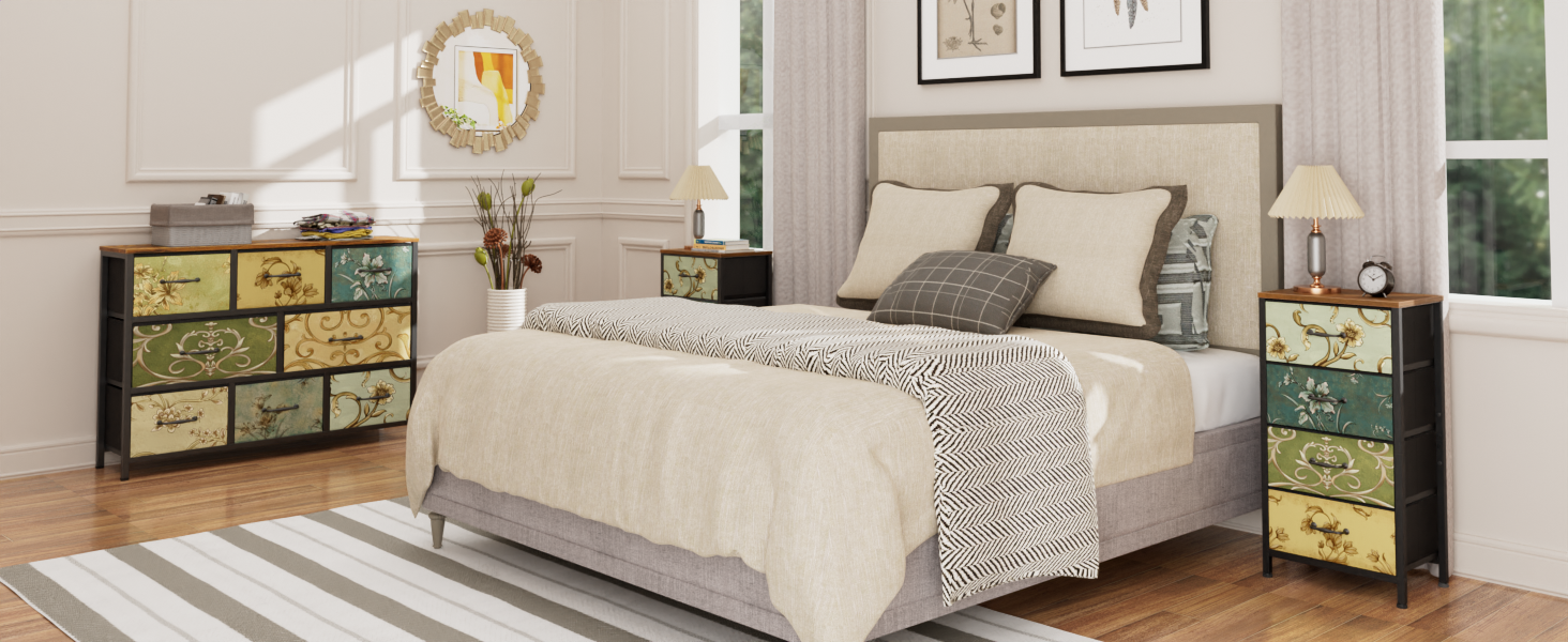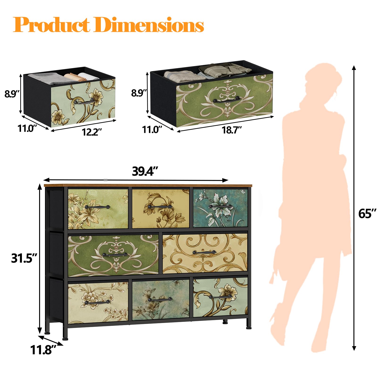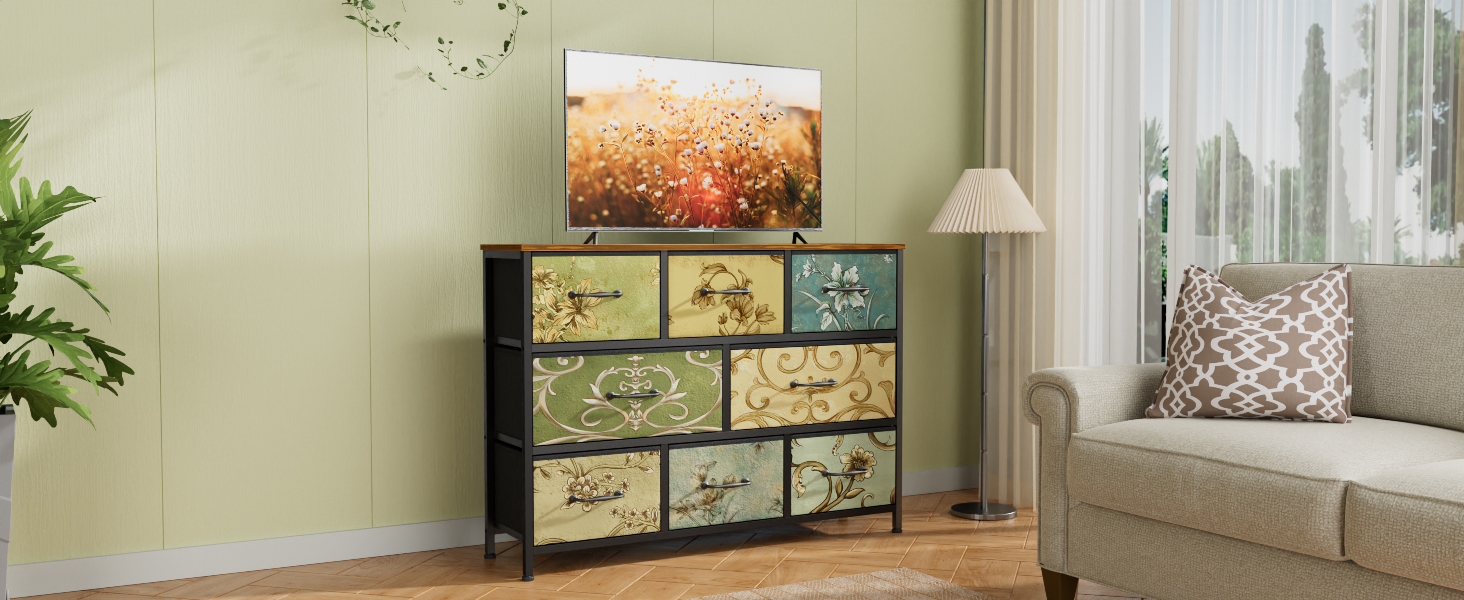 Furnulem dresser with unique floral pattern and color blocking designs can be an accent for modern spaces and also create a new style, producing a special sense of harmony in the collision of classical and modern. It will also add some elegance and charm to your room.