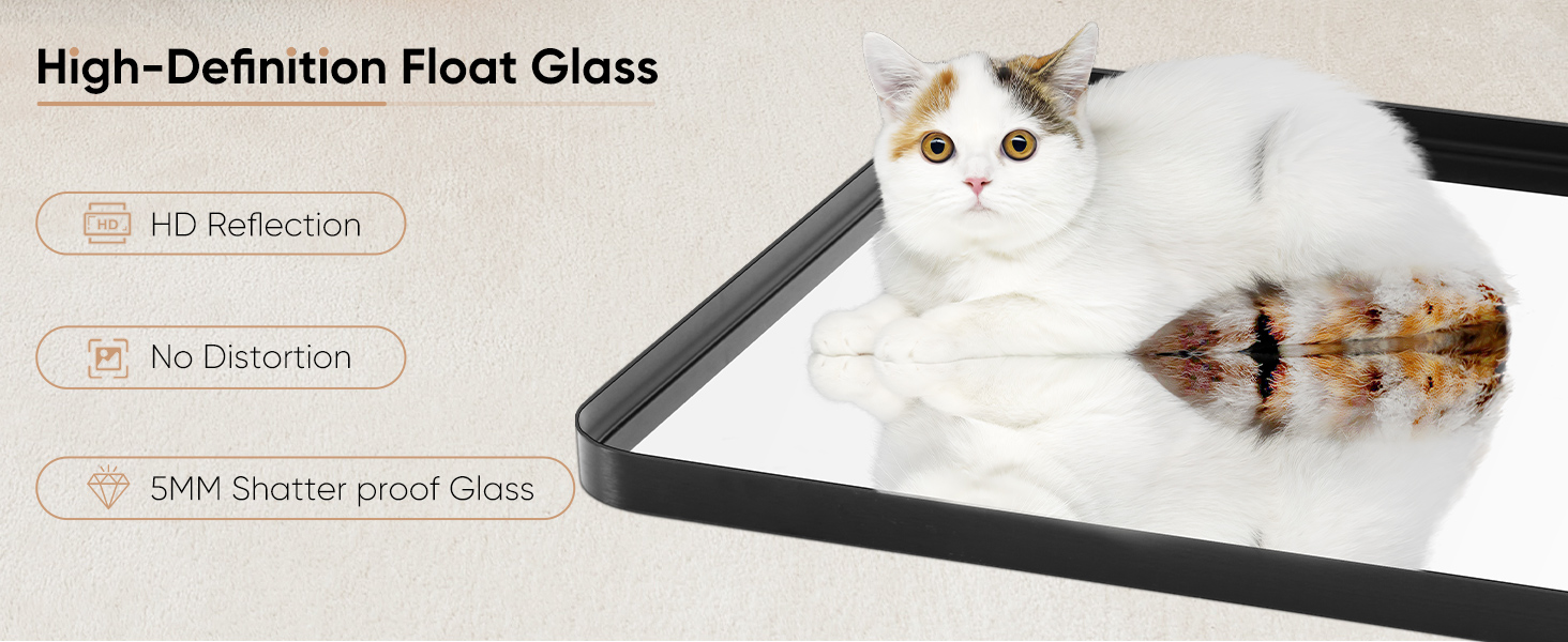 This wall mirror reflects clearly and achieves 1:1 restoration of the real image without distortion. The high-definition float glass design makes it an ideal bathroom vanity mirror.