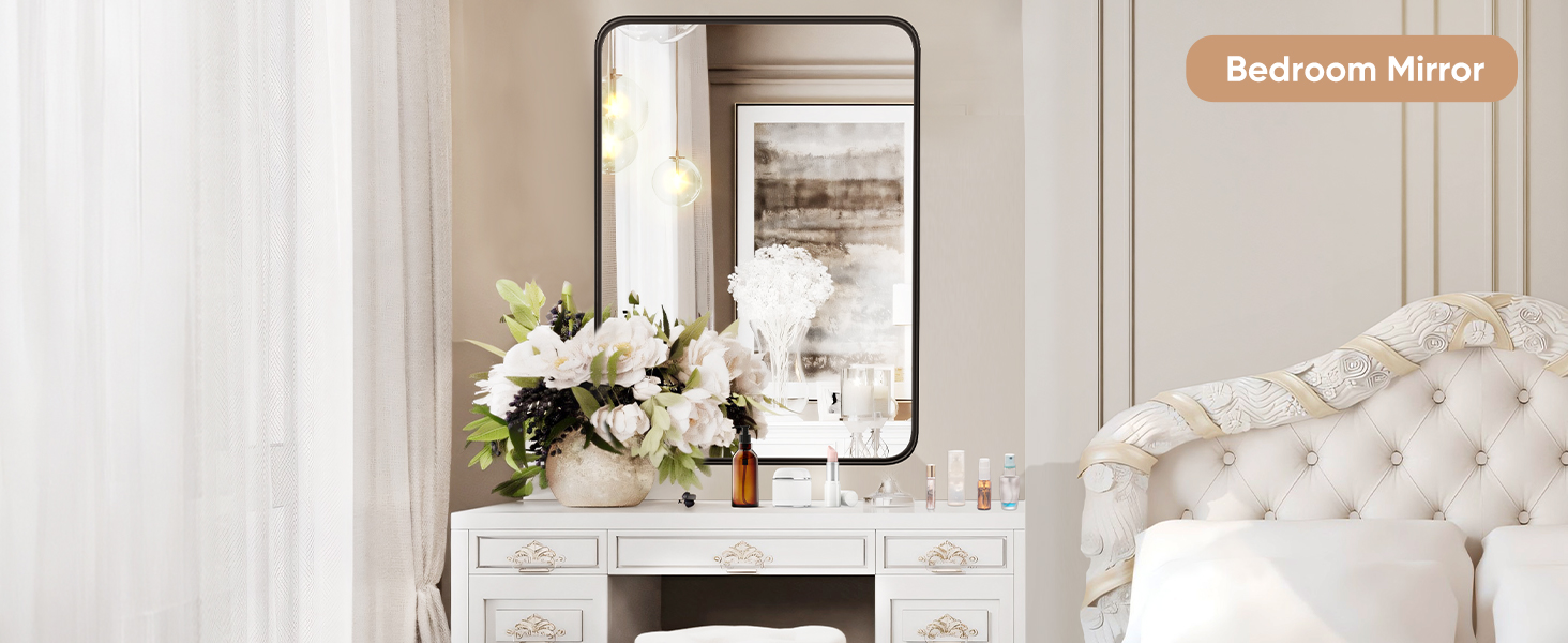 The matte frame mirror can be mounted vertically and horizontally, and with its modern decorative, it can be used in a variety of scenarios, suitable for use in bathroom, vanity, farmhouse, bedroom, living room, dining room, entryway, fireplace, corner.