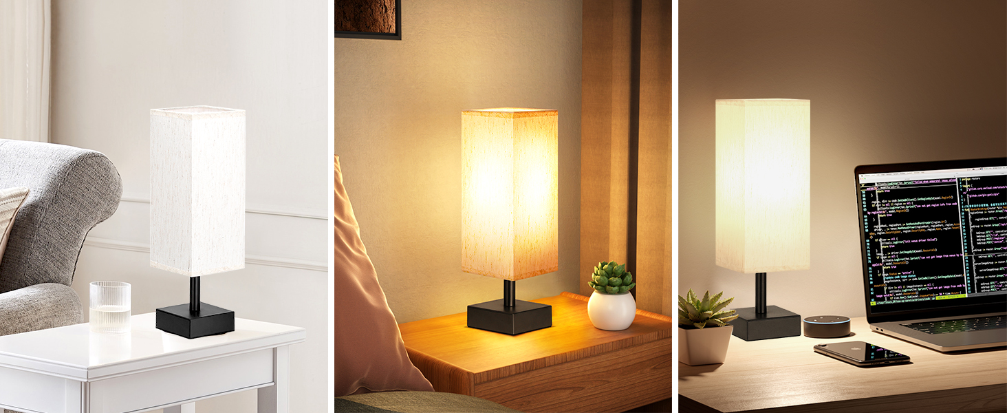 Small Minimalist Table Lamp for Bedroom with Square Fabric Shade for Nightstand