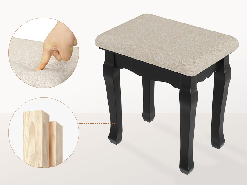 The stool cushion is made of linen fabric and high-density filled sponge for a soft and comfortable sit. The stool is made of pine wood, which is sturdy and durable and will last a long time.