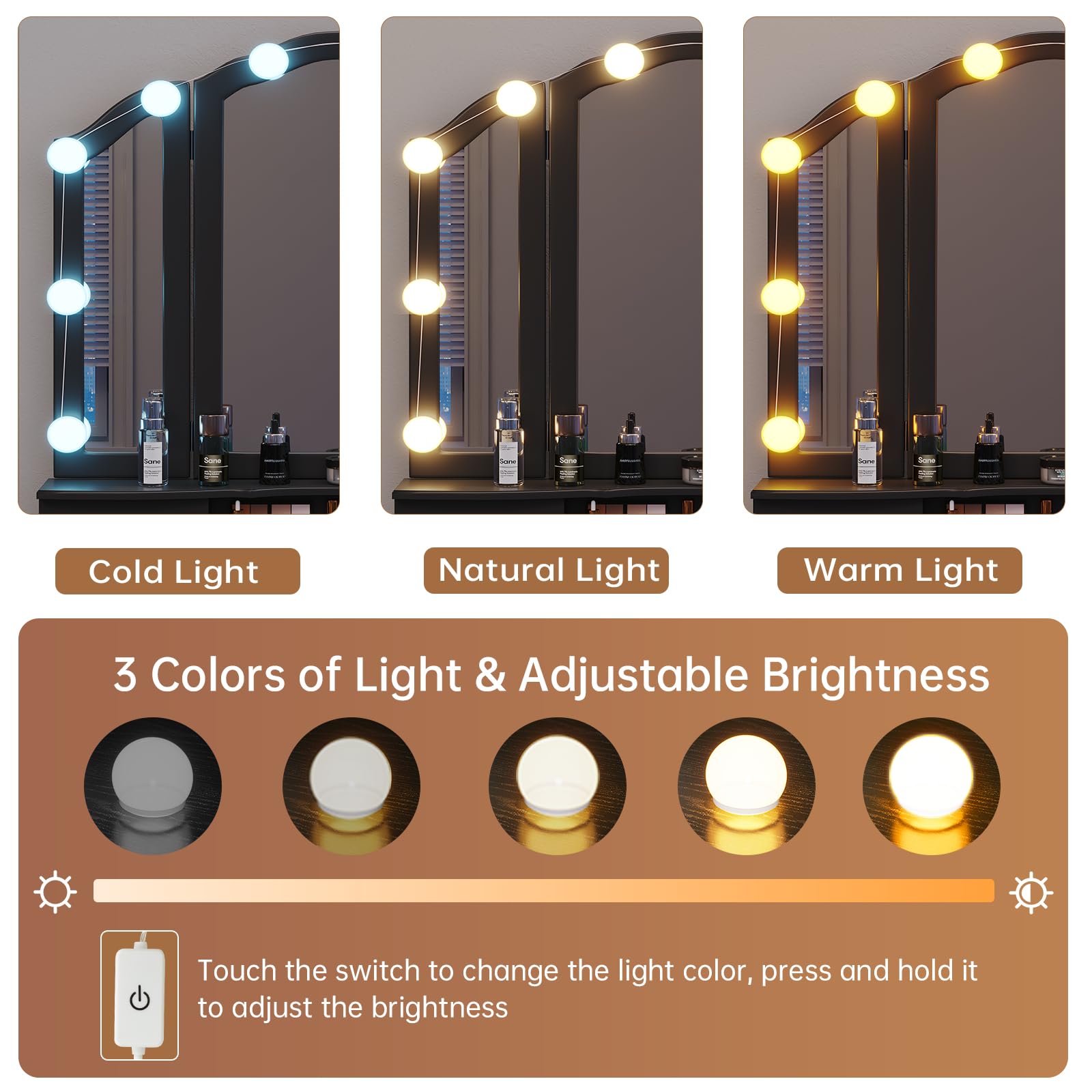 Vanity Desk with 10 Light Bulbs & 3 Color Lighting Modes